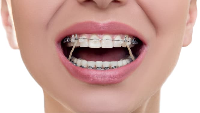 O aparelho fixo é um dispositivo médico usado para alinhar os dentes, compostos por bráquetes, fios e elásticos.